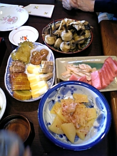 京都の料亭から取り寄せたもの、デパートで買ったもの、家で作ったもの…などなどテーブルいっぱいに並べられ、年末にお腹を壊す風邪を引いて3kg減った体重が、あっという間に元に戻ってしまいました。